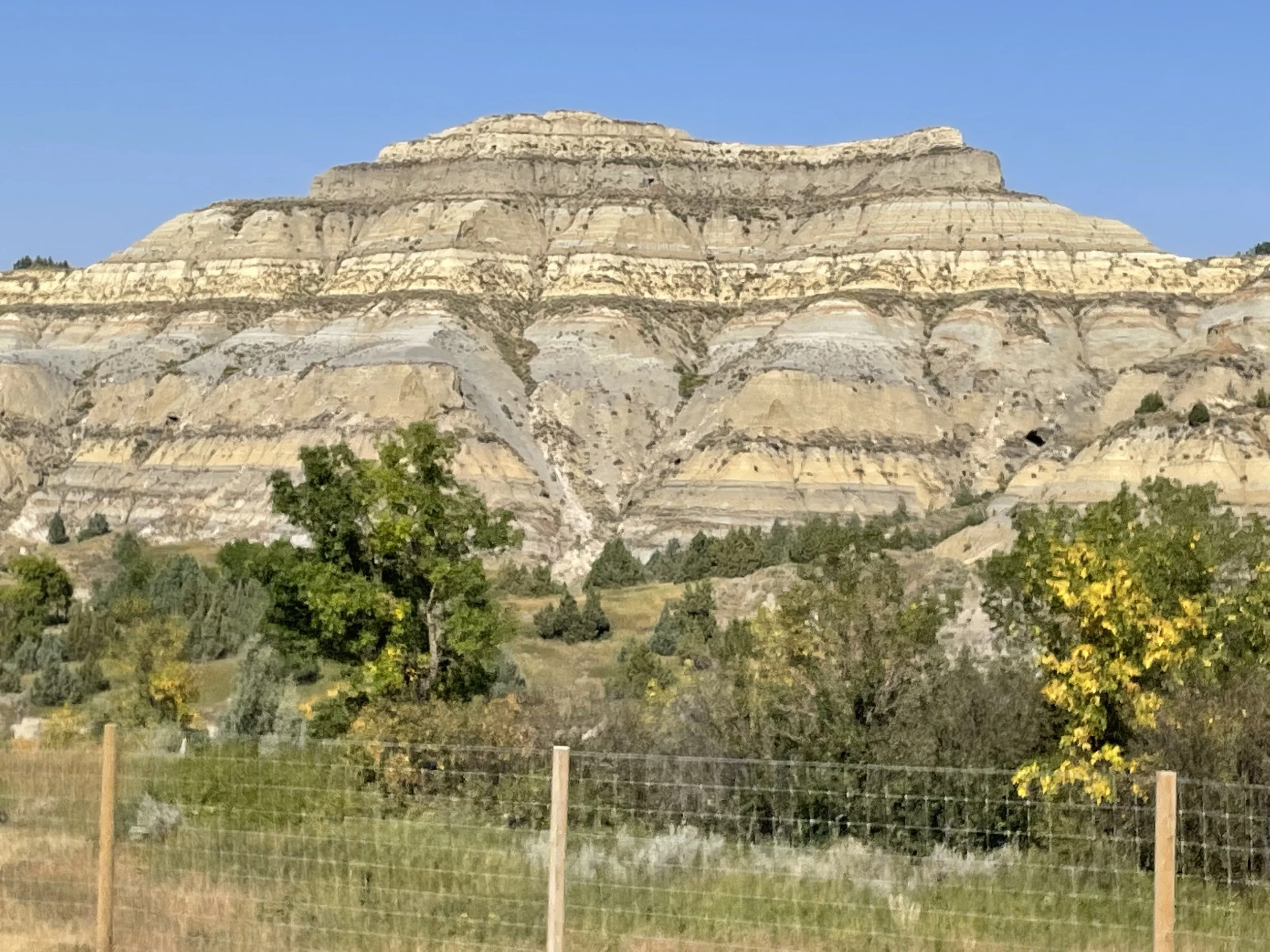 When you turn onto Bear Den Rd. this is where you slow down and actually start enjoying the ride. There are a lot of oil wells out here, but your also riding into the MHA Tribal area. Out here, the cattle and horses are free range, so you can expect to see them grazing on the side of the road or even standing in the middle of it. If you’ve never rolled up on cows or horses standing in the middle of the road, it’s a different kind of ride. Then you’ve got North American bison. They’re fenced, but we love seeing them and never get tired of it, no matter where we are. Sometimes I imagine this is what the old west felt like.